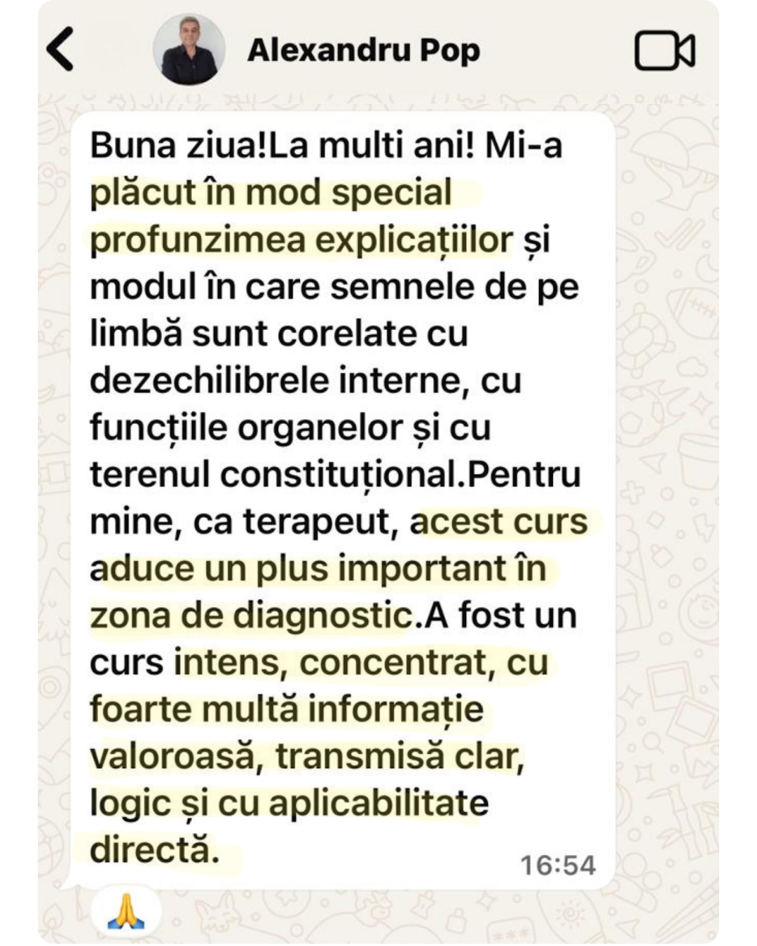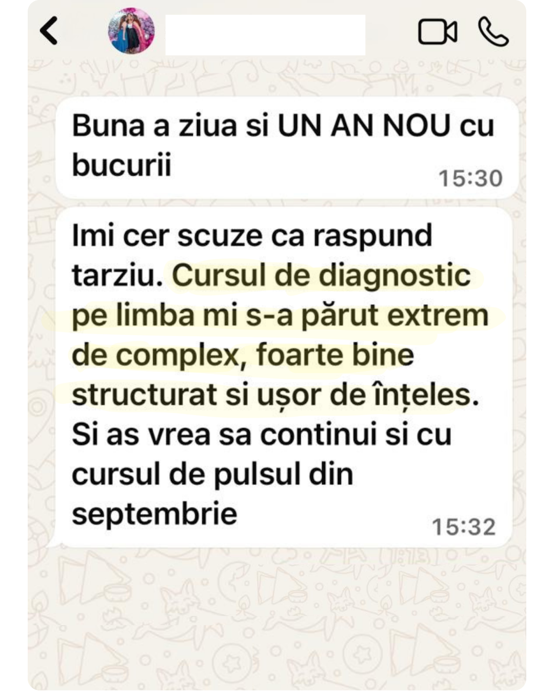 Ai urmat alte cursuri de acupunctură și dorești să aprofundezi tehnicile de diagnostic și tratament pentru a obține rezultate mai bune în practică.